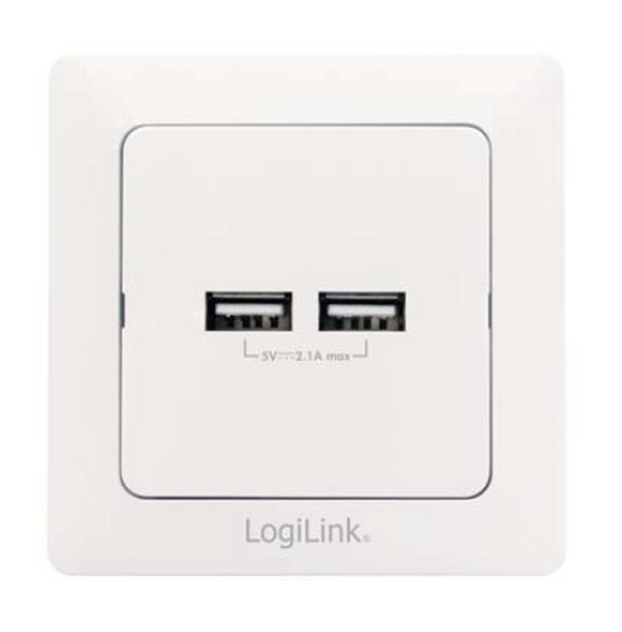 Presa a muro dotata di due uscite USB, in grado di ricaricare due dispositivi USB contemporaneamente senza bisogno di alimentatori.